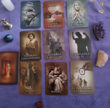 A Través de esta maravillosa lectura Lenormand podrás encontrar todas tus respuestas sin siquiera preguntar nada yo te digo todo."( claro que si lo necesitas también puedes hacer preguntas. Amor,trabajo,Salud, Familia ,Estudios ,etc, además a través de mi Mediumnidad conectar con tus seres queridos que partieron a otro plano , si es que ellos lo quieren .